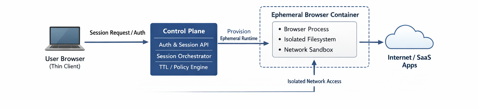 This article explores a practical architecture for ephemeral browser sessions, where each browsing session is isolated, short-lived, and destroyed by design.
